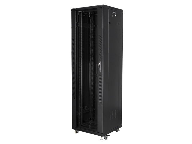 Volně stojící rozvaděč Lanberg FF01-6642-12B je řešení určené pro rozšíření sítí, instalaci kabeláže a zařízení o velikosti 19” s max. 800 kg. nosnost. Může být použit v sítích, serverovnách, malých a středních firmách a datových centrech, která potřebují hodně místa ve skříni pro síťová zařízení. Může také pracovat v systémech nízkého napětí, jako jsou sítě kabelové televize, poplašné systémy, systémy požární ochrany a systémy kontroly přístupu, CCTV a IP dohled. Konstrukce je vyrobena z vysoce kvalitní oceli válcované za studena, která se vyznačuje vynikajícím designem a vysokou kvalitou řemeslného zpracování. Skříň umožňuje plné nastavení hloubky vertikálních montážních lišt. Je vybaven předními dvířky z tvrzeného skla se zámkem a možností instalace na pravou nebo levou stranu. Má odnímatelné boční panely (včetně zámků) a zadní masivní ocelové dveře se zámkem. Kabeláž můžete protáhnout vstupním kabelem na horní a spodní panely (s prázdnými vstupními panely). Ventilátor obsahuje 2 ventilátory 230V. Balení navíc obsahuje další příslušenství pro držáky na kolejnice, klecové matice M6 a prázdné vstupní panely. Konstrukce skříně pro vlastní montáž je ve třech plochých obalech, což usnadňuje přepravu.