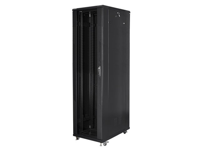 Konstrukce výrobku je vyrobena z vysoce kvalitní oceli válcované za studena, která se vyznačuje vynikajícím designem a vysokou kvalitou řemeslného zpracování. Skříň umožňuje plné nastavení hloubky vertikálních montážních lišt. Navíc je vybaven předními dvířky z tvrzeného skla se zámkem a možností instalace těchto dvířek na pravou nebo levou stranu.