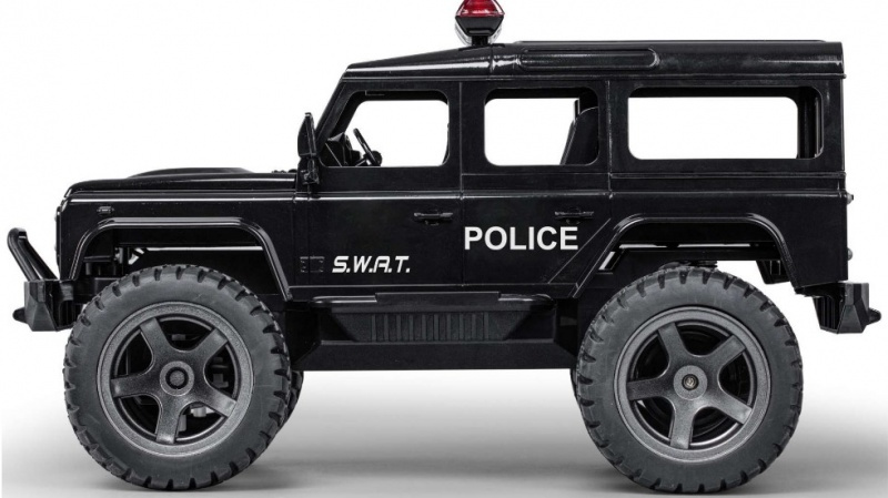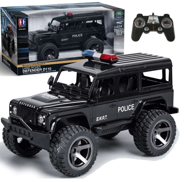 Land Rover Defender Police S.W.A.T. 1/14Licencovaný RC model od velmi oblíbené a spolehlivé firmy Double Eagle vás mile překvapí svým vzhledem. Krásně zpracovaný Defender je z velmi kvalitního a odolného ABS plastu. Poháněna jsou zadní veliká kola s měkkými pneumatikami a hlubokým vzorkem.Ovládání je velice snadné, pomocí páčkového ovladače jezdí vpřed, vzad, doleva a doprava. Na cestu vám svítí přední světla a vše podtrhuje maják na střeše. Jedním tlačítkem spustíte sirénu i blikání majáku a jde se do akce!Díky akumulátoru Li-ion 500mAh 7,4V vydrží v provozu cca 15 minut, nabijete ho přiloženou USB nabíječkou. Dosahuje rychlosti 10km/h. Dobu jízdy lze prodloužit silnějším akumulátorem. Obsah balení: Land Rover Defender Police S.W.A.T. Akumulátor Dálkové ovládání USB nabíječka Technické parametry: Měřítko: 1/ Konstrukce auta: crawler Délka auta: 33 Šířka auta: 18 Výška auta: 20 Auto je vhodné na ven: ano Barva: černá Auto je vhodné do interiéru: ano Typ motorů v autě: stejnosměrné Rychlost auta: 10 Kapacita akumulátoru v autě: 500 Napětí akumulátoru v autě: 7.4 Typ akumulátoru do auta: Li-ion Typ nabíječky: USB Výměnný akumulátor v autě: ano Napájení ovladače k autu: 2xAA Doba jízdy auta: 15 Dosah ovládání auta: 30 Frekvence ovládání RC auta: 2,4Ghz Konstrukce ovladače k autu: Páčkový Plynulá regulace rychlosti: ne Plynulá řízení zatáčení: ne Voděodolnost (stříkající voda): ne Vodotěsnost (potopení): ne