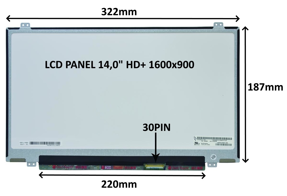 LCD PANEL 14,0" HD+ 1600x900 30PIN MATNÝ / ÚCHYTY NAHOŘE A DOLE