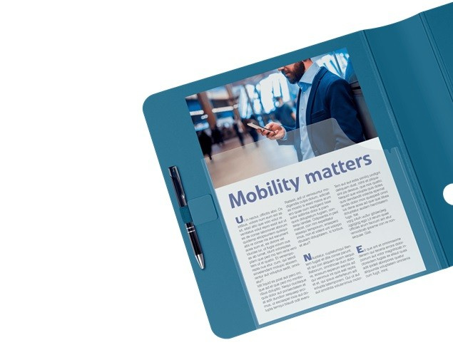 Pro práci s dokumenty na cestách. Mechanismus s otvíráním 180°. A4, 75 mm.