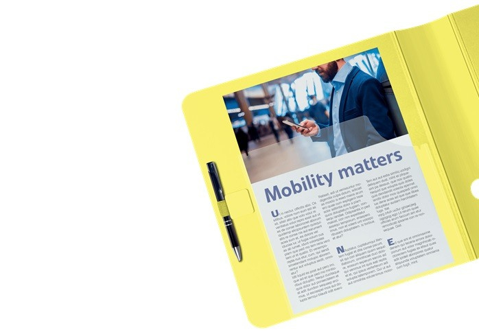 Pro práci s dokumenty na cestách. Mechanismus s otvíráním 180°. A4, 75 mm.