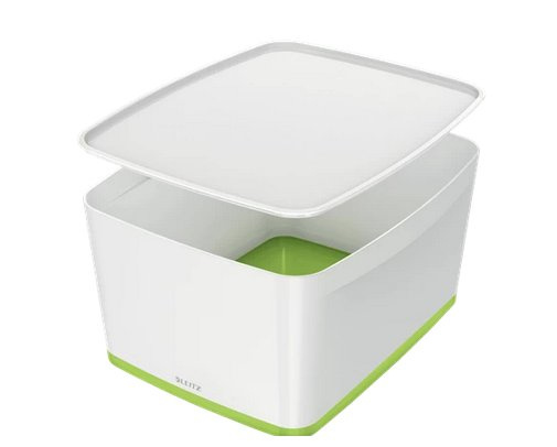 LEITZ Úložný box s víkem MyBox, velikost L, bílá/zelená