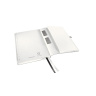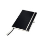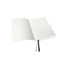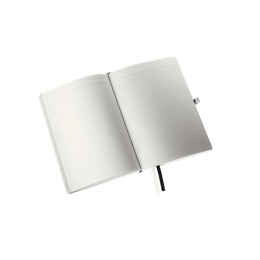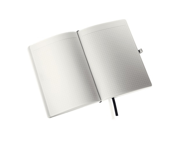 Prémiový zápisník s měkkými deskami. Formát A5, čtverečkovaný. Uzavírání na gumičku, úchyt na propisku a vnitřní kapsa na volné papíry.