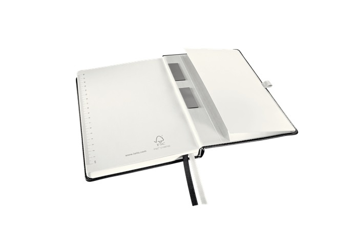 Vnitřní kapsa s rozšiřitelnou kapacitou na přední a zadní straně zápisníku k uložení volných papírů a dalších drobností