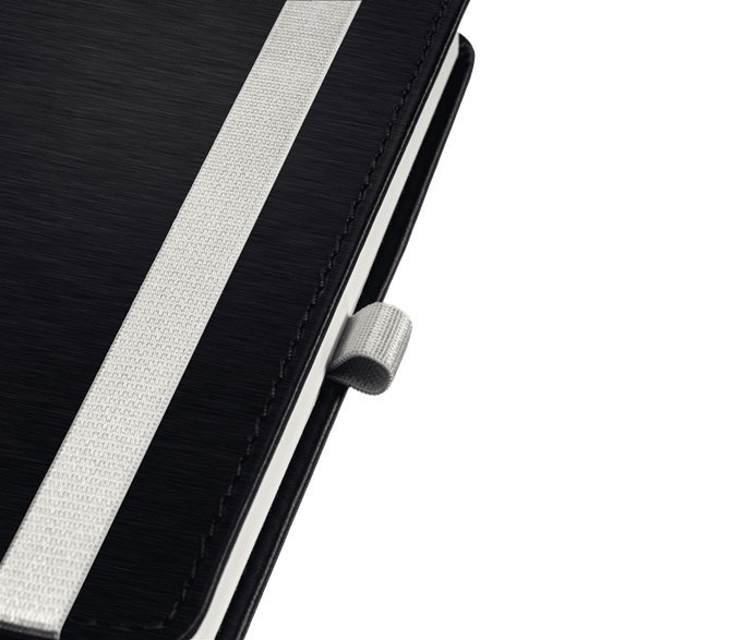 Uzavírání na gumičku v atraktivní stříbrné barvě dodává zápisníku atraktivní vzhled a drží ho pevně zavřený