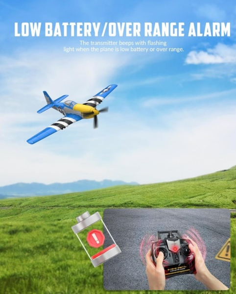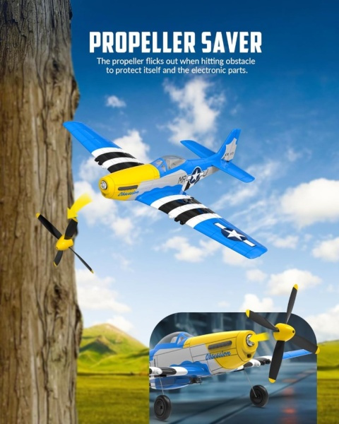 Obsah balení: RC letadlo Mustang P51D Dálkové ovládání 2,4 GHz Akumulátor 3,7 V 400 mAh Nabíjecí USB kabel 1x náhradní vrtule dvoulistá 2x náhradní vrtule čtyřlistá Technické parametry: Rozpětí: 40 Délka letadla: 31.7 Barva: modrá Frekvence ovladače: 2,4Ghz Dosah ovladače: 200 Napětí akumulátoru: 3.7 Kapacita akumulátoru: 400 Typ akumulátoru: Li-Po Doba nabíjení: 90 Doba letu: 20 Baterie ovladače: 4xAA Počet kanálů: 4 Kamera: ne Nabíjecí proud nabíječky: 500