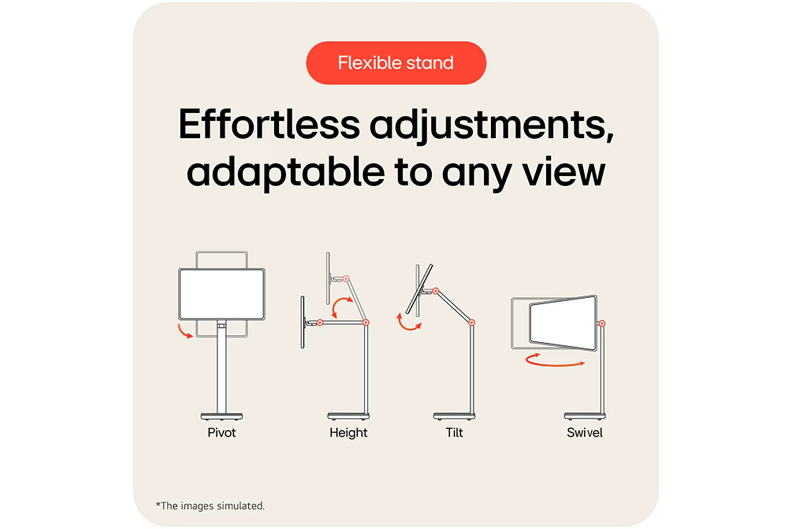 *Tilt, Height, Swivel, and Portrait Mode adjustable stand with wheels