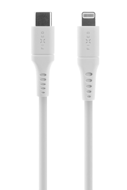 Liquid silicone kabel FIXED s konektory USB-C/Lightning a podporou PD, 0.5m, MFi, bílý
