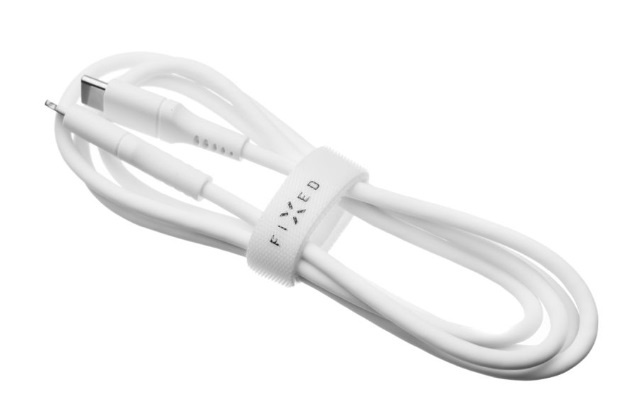 Liquid silicone kabel FIXED s konektory USB-C/Lightning a podporou PD, 1.2m, MFi, bílý