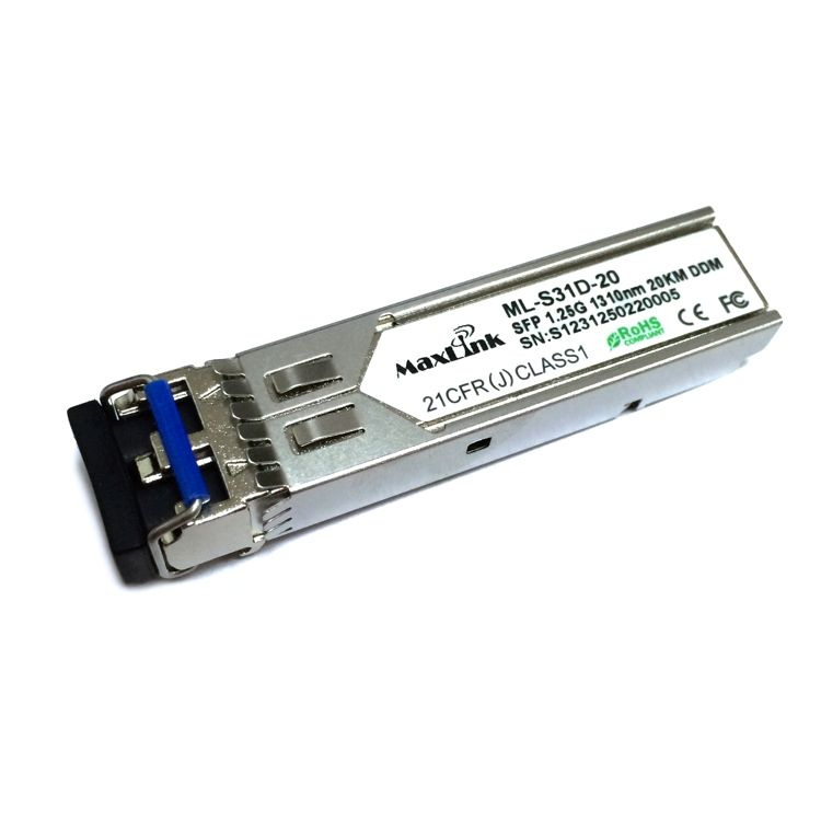 ML-S31D-20 je 1.25G SFP modul s 1310nm vlnovou délkou, dvěmi LC konektory a maximální vzdáleností 20km po singlemode optickém vlákně. SFP modul podporuje monitoring, neboli DDM funkci.