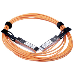 Aktivní optický propojovací AOC kabel je dodáván s universální Cisco kompatibilitou, která zaručí bezproblémové použití s většinou výrobců aktivních prvků. AOC propojovací kabel se zapojí přímo do SFP/SFP+ slotu na aktivním prvku a ihned tak vytvoření spojení rychlostí až 10Gbps. Propoj pomocí AOC se v aktivním prvku jeví i chová jako spojení s klasickými SFP/SFP+ moduly. Délka 5m, aktivní provedení.
