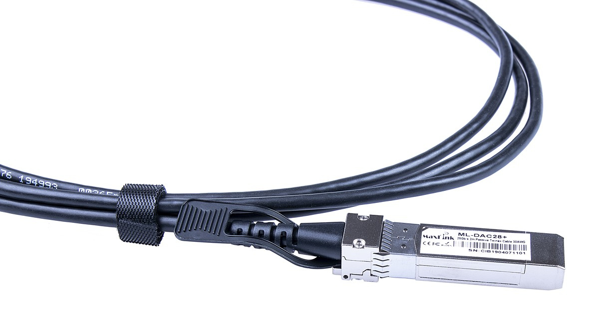 MaxLink 25G SFP28 DAC kabel, pasivní je rychlé a levné řešení pro snadné propojení dvou síťových aktivních prvků switch/router rychlostí 25Gbps bez nutnosti pořízení samostatných modulů či jiného příslušenství (například optické patch kabely).
