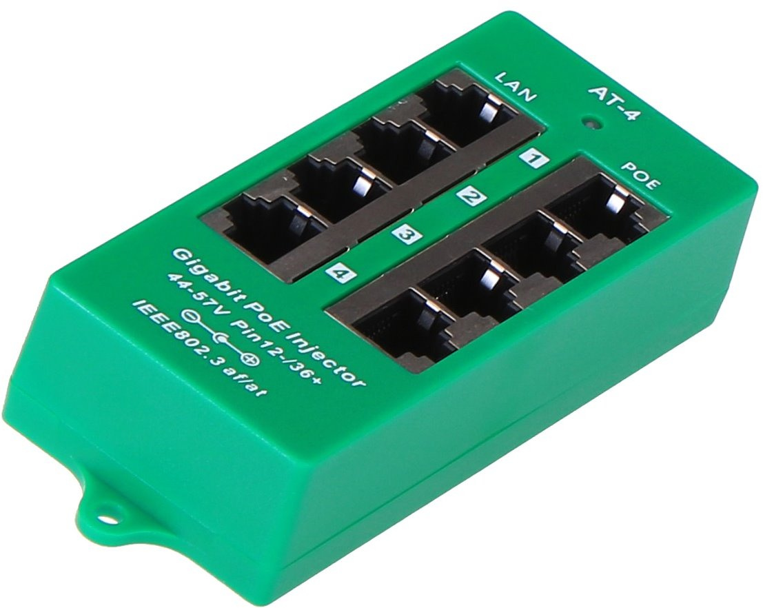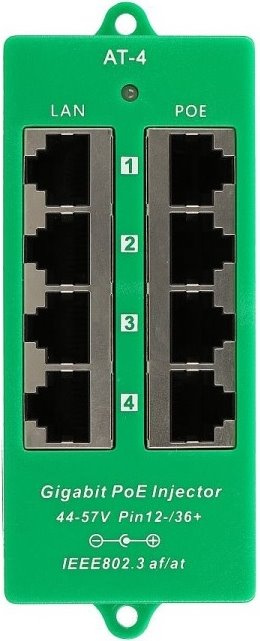 Gigabitový aktivní PoE injektor určený pro napájení až čtyř zařízení, jako jsou IP kamery, VoIP telefony nebo další síťová zařízení s podporou standardů 802.3af/at. Poskytuje spolehlivé napájení i přenos dat po ethernetovém kabelu a je vhodný pro profesionální instalace s vyššími nároky na výkon.