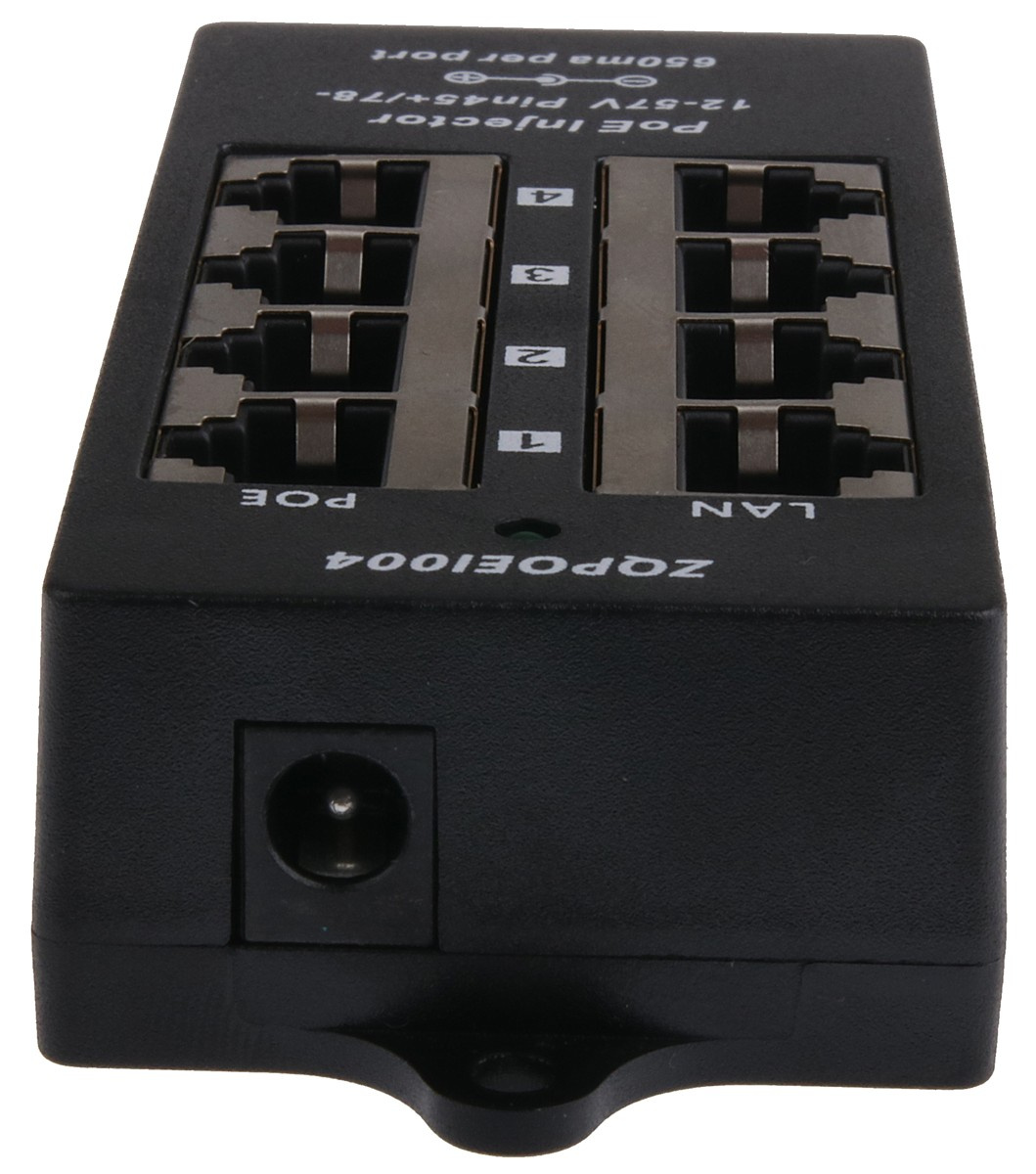Pasivní PoE injektor lze použít v rozmezí 12 až 57V DC s max. proudem 650mA / port.