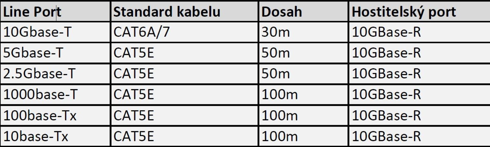 Přenosová rychlost: 1 Gbps, 2.5 Gbps, 5 Gbps, 10 Gbps