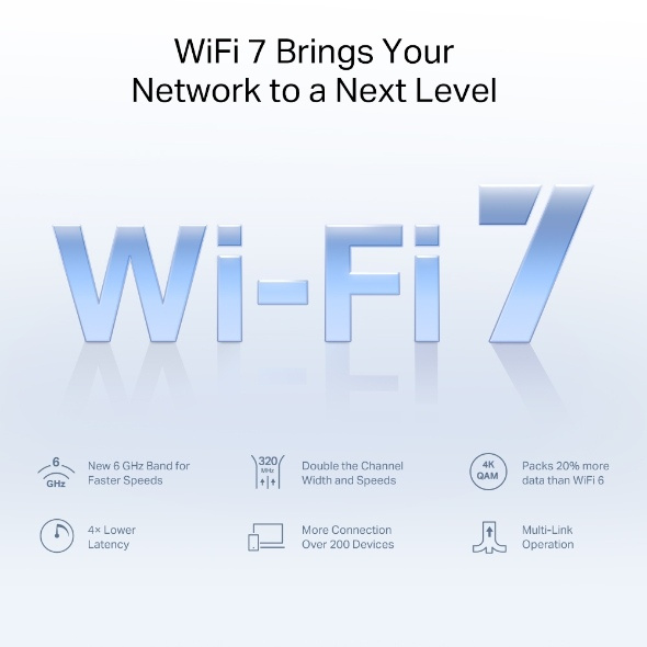 Nejnovější Wi-Fi 7: Díky 320 MHz kanálům, 4K-QAM, MLO a pásmu 6 GHz spolu s dalšími funkcemi Wi-Fi 7 přinese vaše síť ohromující výkon.?