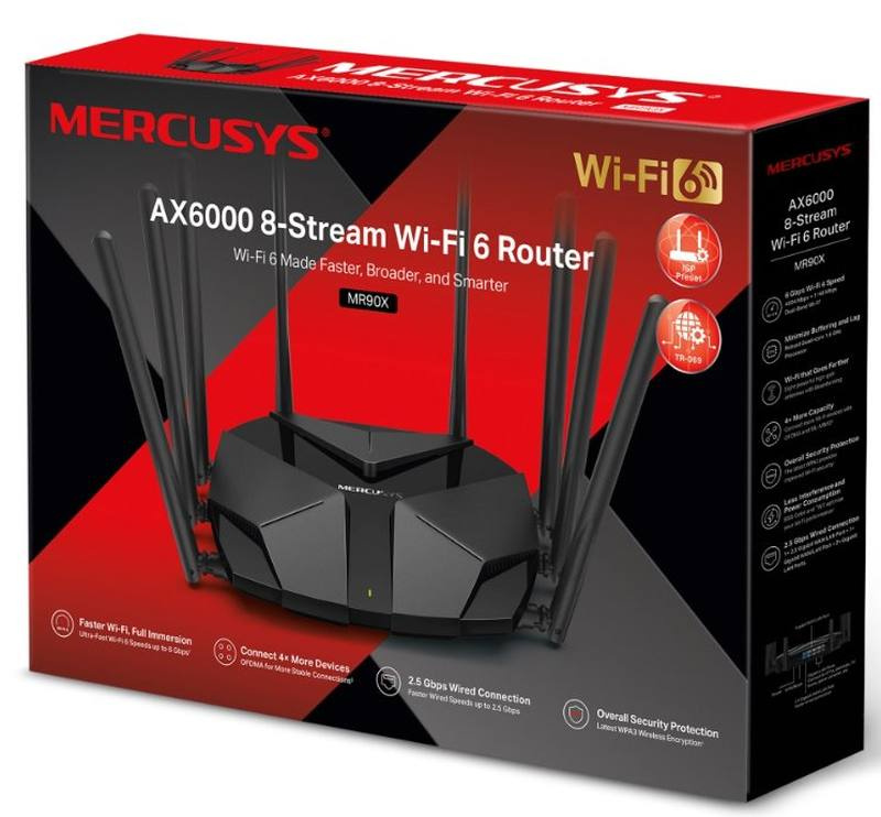 MERCUSYS MR90X - AX6000 WiFi 6 router dual AP/WiFi router, 3x GLAN, 1x GWAN/ 574Mbps 2,4/ 2402Mbps 5GHz
