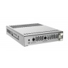 Switch je vybaven dvěma redundantními napájecími vstupy zdroji (12 - 57V DC jack) a pasivním chladičem umožňující tichý provoz.