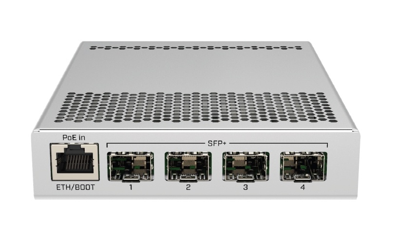 Cloud Router Switch 305-1G-4S+IN je operačním systémem SwOS či RouterOS poháněný 5-portový switch se čtyřmi SFP+ šachtami a jedním GB ethernet portem v desktop provedení.