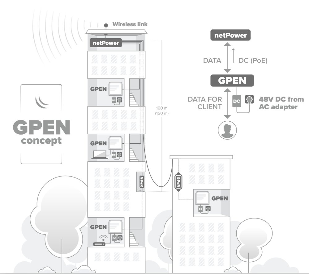 Jedná se o součást GPEN (Gigabit Passive Ethernet Network) konceptu firmy Mikrotik jako ekonomičtější alternativy k GPON instalacím.
