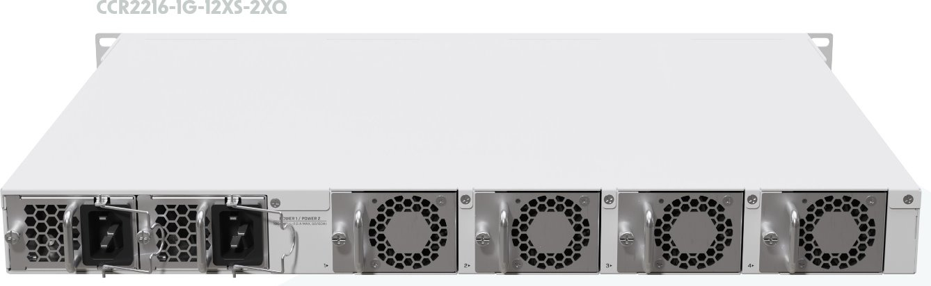 Buďte připraveni na neočekávané problémy s ventilátory u MikroTik zařízení CCR2216-1G-12XS-2XQ díky náhradním a snadno vyměnitelným ventilátorům za provozu bez nutnosti vypnutí nebo zbytečného rozebírání.