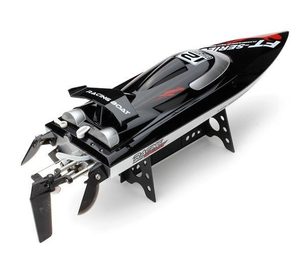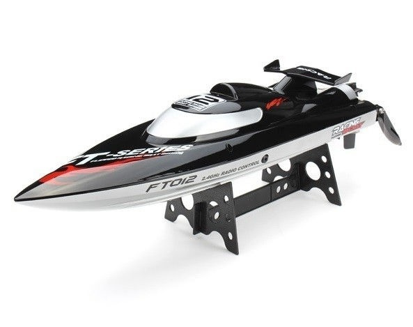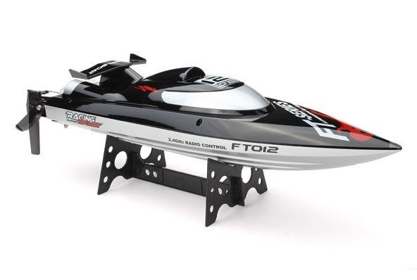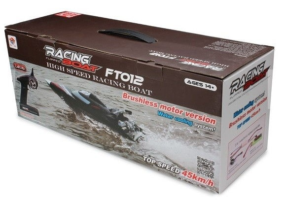 Obsah balení: RC model FT012 Dálkový ovladač 2,4 GHz Baterie Nabíječka Stojánek Náhradní vrtule Speciální prvek pro zpevnění přední části lodi Manuál Technické parametry: Délka: 46 Šířka: 12.5 Výška : 11.8 Rychlost: 45 Výdrž: 6 Kapacita akumulátoru: 1800 Napětí akumulátoru: 11.1 Typ akumulátoru: Li-Po Napájení ovladače: 6xAA Vodou chlazený motor: ano Barva: černá Proporcionální plyn: ano Proporcionální zatáčení: ano Dosah: 150 Vodotěsnost: ano