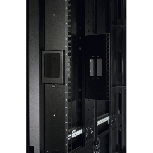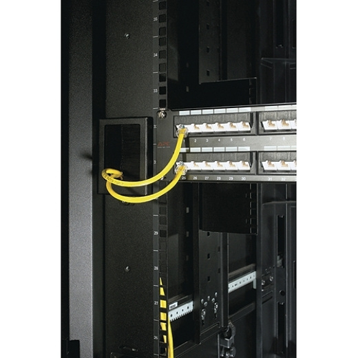 Tento horizontální organizér kabelů podporuje správné proudění vzduchu a zároveň umožňuje vedení kabelů zepředu do zadní části stojanu. Obsahuje plastové prsty v krocích po 1U pro organizovaný vstup a výstup kabelu.