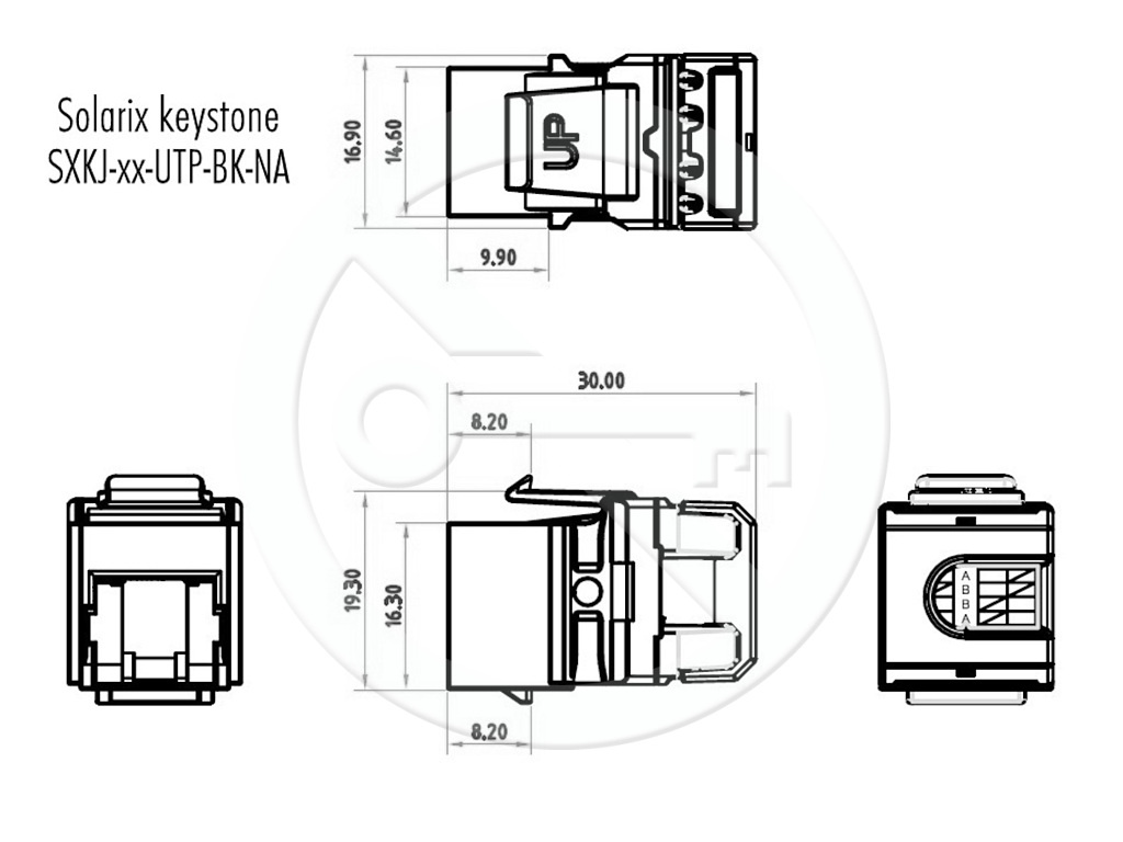 Keystony produktové řady Solarix – kategorie 5E s označením SXKJ-5E-UTP-BK-NA jsou keystony, u kterých je důraz kladen především na rychlost a jednoduchost zařezání. Tyto keystony lze zařezat speciálními kleštěmi, které významně zkracují čas instalace. Keystony jsou dostupné ve stíněném i nestíněném provedení a bez problémů splňují požadavky definované v mezinárodních standardech ANSI/TIA 568, ISO/IEC 11801 a EN 50173 pro kategorii 5E a třídu vedení Class D, včetně všech nejnovějších dodatků. Standardní barva nestíněných keystonů je černá, u stíněné verze je tělo modulu opatřeno stříbrnou kovovou částí. Kleště s označením SXKJ-NA-BU je nutné dokoupit zvlášť a lze je použít pouze na tento typ keystonů (tj. SXKJ-xx-yyy-BK-NA). Stejně jako všechny komponenty v produktové skupině Solarix – kategorie 5E jsou i tyto rychlozařezávací keystony vyrobeny tak, aby poskytovaly maximální životnost, vynikající výkon, spolehlivost a především jednoduchou instalaci. Nestíněné keystony jsou navíc vybaveny speciální protiprachovou krytkou. Díky svým kompaktním rozměrům jsou tyto rychlozařezávací keystony kompatibilní s modulárními zásuvkami většiny výrobců (např. ABB, Schneider, Legrand, Moeller, Hager, Obzor atd.). Tuto kompatibilitu si můžete ověřit v naší tabulce kompatibility keystonů Solarix.