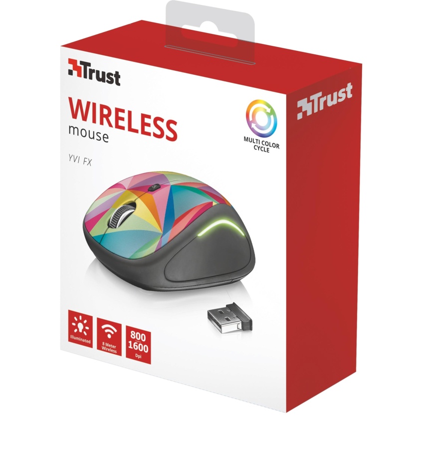 Trust Yvi bezdrátová osvětlená myš kombinuje funkčnost s barvami. Vezměte si tuto kompaktní myš kamkoli s sebou a začněte bleskově pracovat.