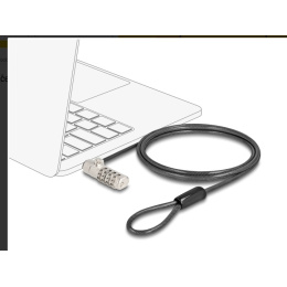 Tento bezpečnostní zámek notebooku od Navilocku umožňuje uzamčení různých zařízení, např. notebooků, projektorů, monitorů atd. kdekoliv. Lanko z uhlíkové oceli délky 1,5 m se zámkem na čtyřmístnou číselnou kombinaci lze snadno ovázat kolem předmětu jako je noha od stolu, židle a podobně, takže chrání zařízení před krádeží. Otočný kloub o 180° usnadňuje připevnění zámku.