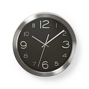 Nedis CLWA010MT30BK - Kulaté Nástěnné Hodiny | Průměr 30 cm | Černá a Nerezová Ocel