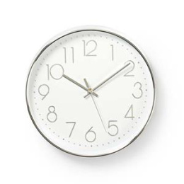 Nedis CLWA015PC30SR - Kulaté Nástěnné Hodiny | Průměr 30 cm | Bílá a Stříbrná