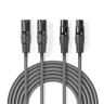 Nedis COTH15030GY30 - Vyvážený XLR Audiokabel | 2x XLR 3pinová Zástrčka – 2x XLR 3pinová Zásuvka | 3 m | Šedá barva