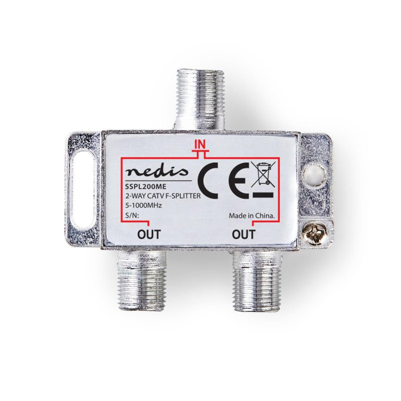 Nedis SSPL200ME - CATV F-Rozbočovač | Max. zisk 4,2 dB | 5–1 000 MHz | 2 Výstupy