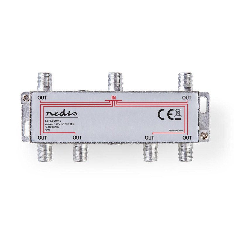 Nedis SSPL600ME - CATV F-Rozbočovač | Max. zisk 10 dB | 5–1 000 MHz | 6 Výstupů