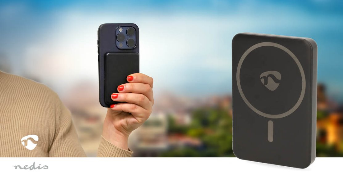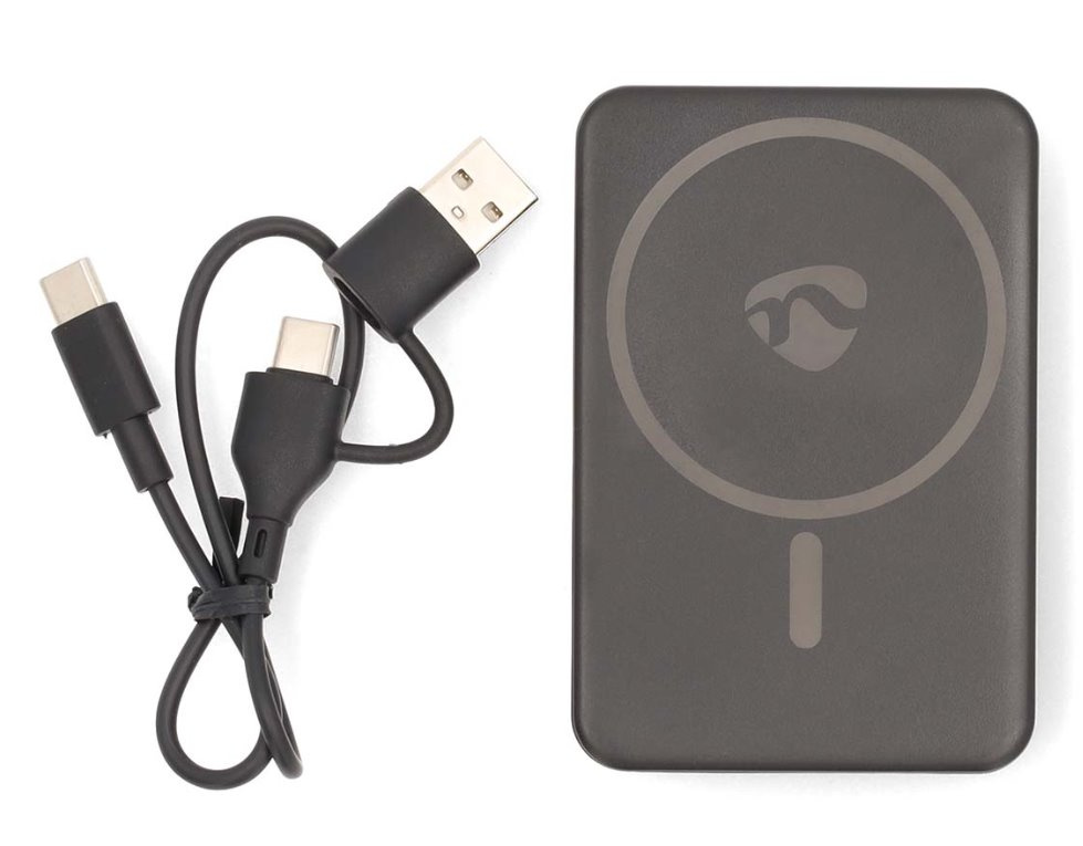Nedis UPBKW15W5000BK - Powerbanka | 5000 mAh | Bezdrátové nabíjení / Výstup1x USB-C | Vstup1x USB-C | PD3.0 20W