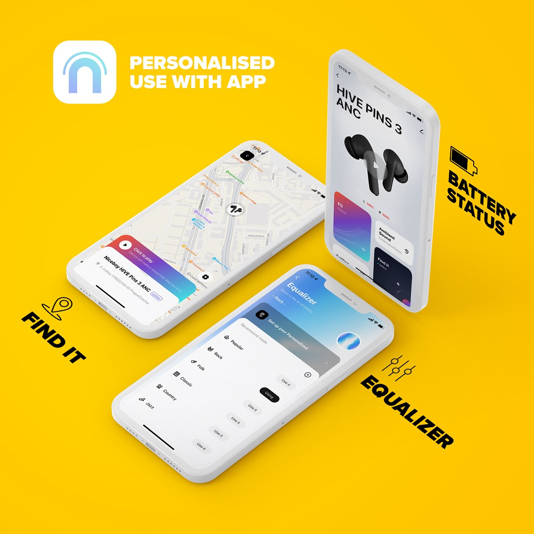 Chcete si nastavit zvuk podle svého gusta? S mobilní aplikací Niceboy ION je díky funkci ekvalizéru možné. A nejen to, s touto aplikací můžete vyhledat odložená sluchátka nebo zjistit, na kolik procent jsou sluchátka nabitá – uvidíte procenta pro každé sluchátko zvlášť.