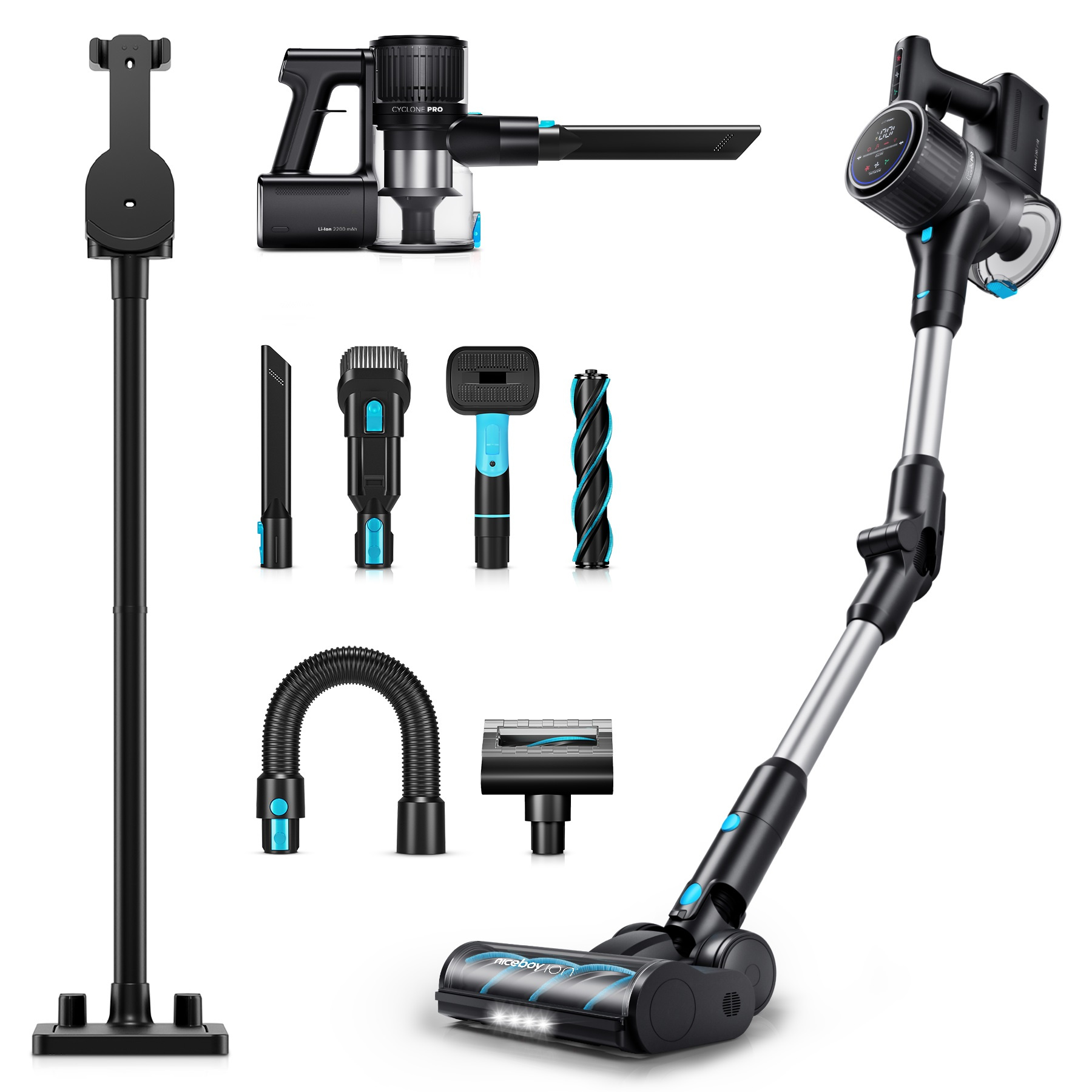 Niceboy ION Hurricane H9 přichází s řadou specializovaných nástavců pro maximální účinnost úklidu. Štěrbinová hubice s LED osvětlením vám umožní snadno dosáhnout na těžko přístupná místa a na úklid vám i posvítí. K tomu je k dispozici kartáčová hlavice 2v1, ideální pro čištění čalounění, stolů a polic, a dokonce i speciální kartáč Animal Brush na vyčesávání domácích mazlíčků. Všechny nástavce lze pak připojit k motorové jednotce, dlouhé trubici nebo flexibilní hadici, takže dosáhnete opravdu všude.