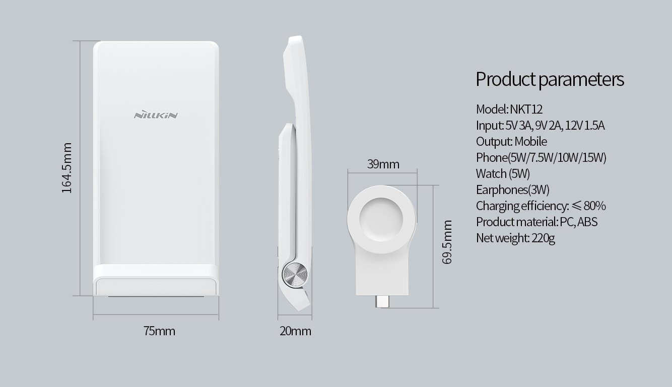 Nillkin Power Trio bezdrátová nabíječka pro Váš telefon, bezdrátová sluchátka a chytré hodinky Huawei Watch.