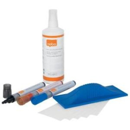 Obsahuje 4 popisovače stíratelné za sucha, stěrku na čištění tabulí za sucha, čisticí sprej Nobo a čisticí hadřík z mikrovláken Nobo