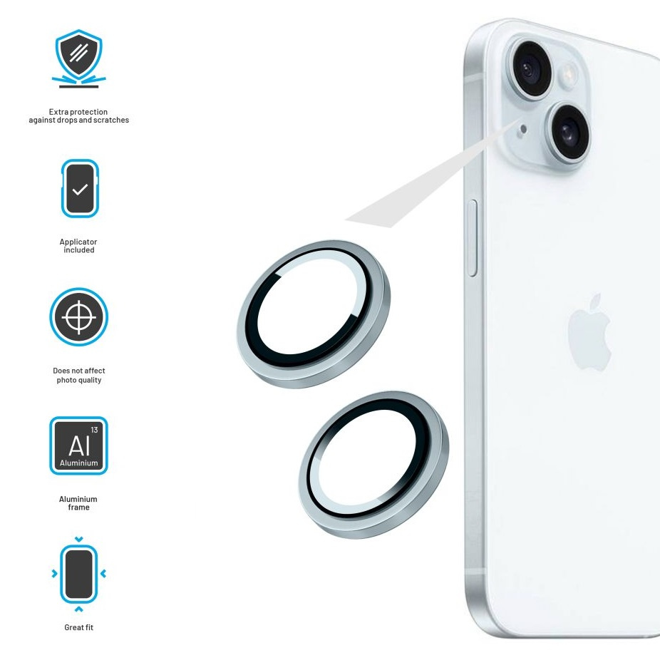 Ochranná skla čoček fotoaparátů FIXED Camera Glass pro Apple iPhone 16/16 Plus, modrá