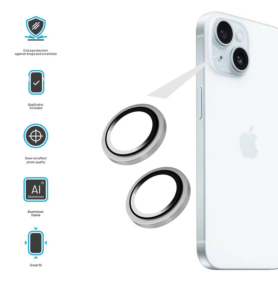 Ochranná skla čoček fotoaparátů FIXED Camera Glass pro Apple iPhone 16/16 Plus, stříbrná
