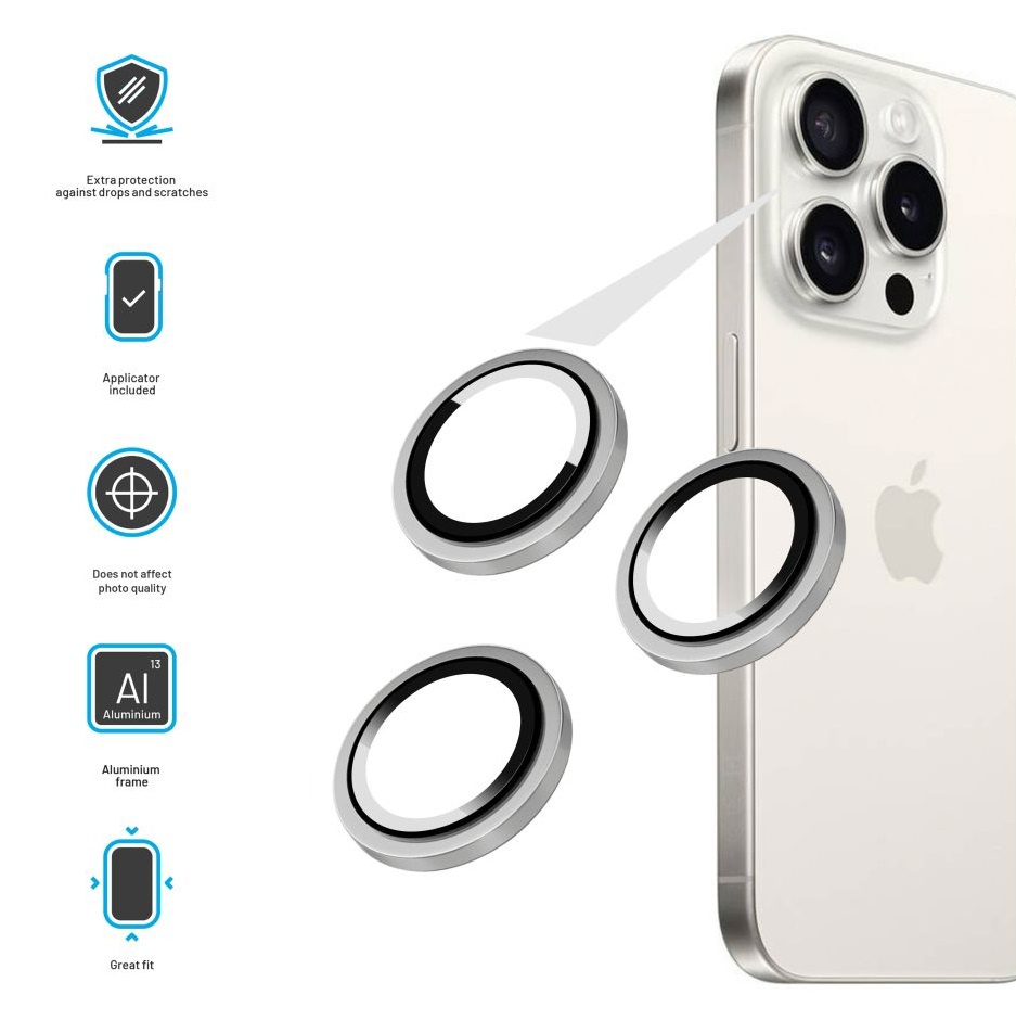 Ochranná skla čoček fotoaparátů FIXED Camera Glass pro Apple iPhone 16 Pro/16 Pro Max, bílý titan