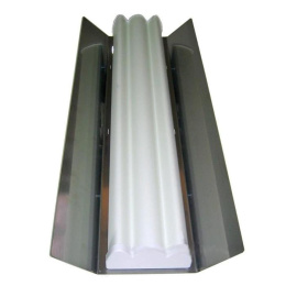 Odrušovač má zalomené odrazové hrany v úhlu 45° aby se dosáhlo maximální odrušení, ale zároveň aby se nenarušil 90° vyzařovací rozsah antény.