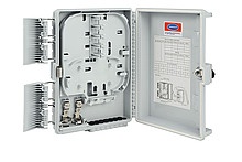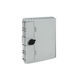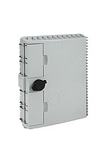 Optický nástěnný box slouží k ukončení optických kabelů ve venkovních i vnitřních instalací. Tento optický box se vyznačuje vysokým stupněm krytí IP65. Povrch optického nástěnného boxu je UV odolný. Je možno jej upevnit na sloup nebo za pomocí montážní sady přímo na zeď. Optický box umožňuje ukončit až 16 vláken v kombinaci adaptérů 16xSC simplex nebo 16xLC duplex, popřípadě 16xE2000. Obsahuje 2x vstup pro optické kabely s gumovou krytkou v provedení mid-span tzn., že je možné ukončit i průběžně instalovaný kabel bez nutnosti přerušení všech vláken v kabelovém svazku. Výstup disponuje 16-ti otvory pro patch kabely, které jsou opatřeny gumou krytkou. Při umístění optického patch kabelu do boxu je nutno naříznout podélně gumovou krytku a zatáhnout ji zpět společně s patch kabelem do otvoru optického boxu. Součástí optického boxu je i horizontální vyklápěcí dno, zajišťující snadnější manipulaci při ukončení a vyvázání pigtailů. Samotný box je uzamykatelný.