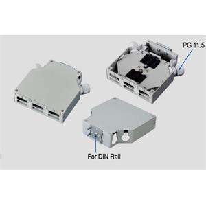 Optický rozvaděč/box pro umístnění na DIN lištu šedé barvy pro max. 6 SC duplex spojek, kovový se šroubovatelným víkem pro zakončení max. 12 optických vláken. Box má 4 kabelové vstupy a dodává se se 2 kabelovými průchodkami, držáky svárů neosazen spojkami.