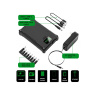 Pro pohodlné a univerzální použití je powerbanka vybavena širokou škálou výstupních konektorů, díky kterým snadno nabijete různé typy zařízení – od mobilních telefonů až po běžnou elektroniku.