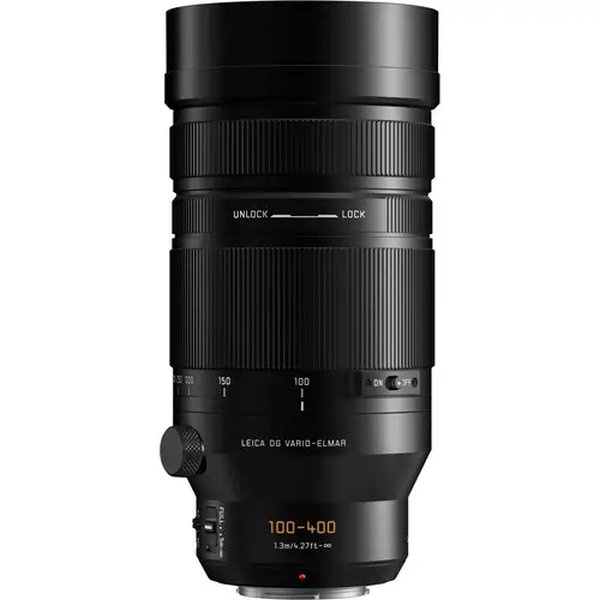 Panasonic Leica DG Vario-Elmar 100-400 mm f/4-6,3 II ASPH. Power O.I.S. je výkonný teleobjektiv s ekvivalentní ohniskovou vzdáleností 200-800 mm navržený pro bajonet Micro 4/3. Objektiv nabízí funkci makro s ekvivalentním zvětšením 0,5x, které lze rozšířit na 1x pomocí volitelného 2x telekonvertoru. Optická konstrukce je složena z 20 členů ve 13 skupinách a obsahuje asférické prvky a prvky s extra nízkým rozptylem pro minimalizaci chromatických a sférických aberací v celém rozsahu zoomu pro vysoké rozlišení a ostrost po celé ploše snímku. Systém Power O.I.S. minimalizuje projevy chvění fotoaparátu při fotografování na delší ohniskové vzdálenosti a je kompatibilní s funkcí Dual I.S. fotoaparátů Lumix G. Konstrukce objektivu je odolná vůči prachu, vlhkosti a mrazu pro spolehlivý výkon v nepříznivých podmínkách. Objektiv je dodáván se stativovou paticí, která umožňuje rychlé přepínání mezi horizontální a vertikální orientací při fotografování na monopodu nebo stativu.