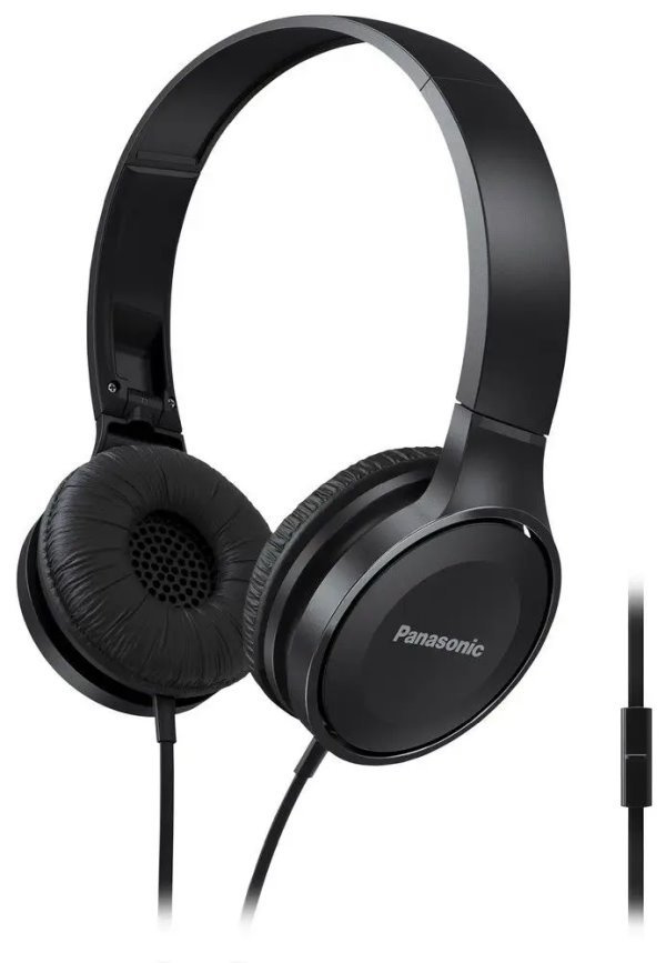 Panasonic RP-HF100ME-K, drátové sluchátka, přes hlavu, skládací, 3,5mm jack, mikrofon, kabel 1,2m, černá